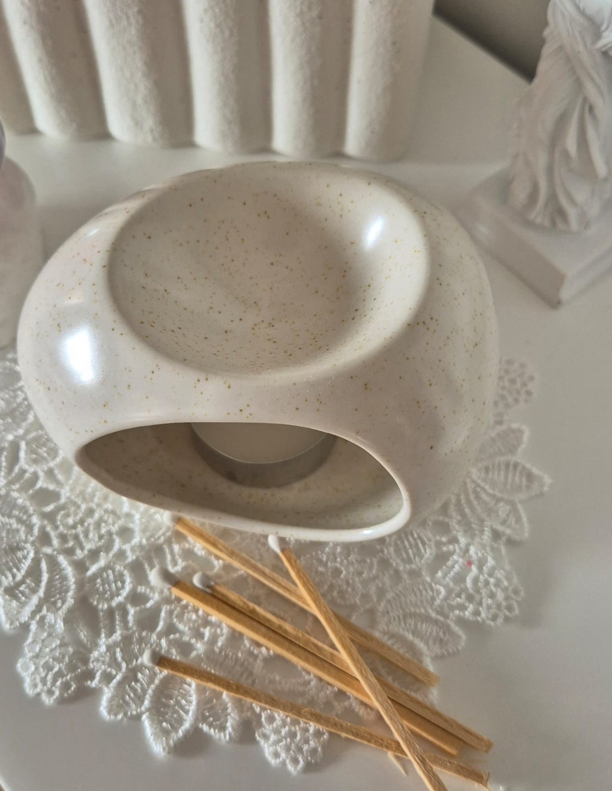 Apportez une atmosphère douce et chaleureuse à votre intérieur avec ce brûle-parfum osmê en céramique au design épuré et naturel.